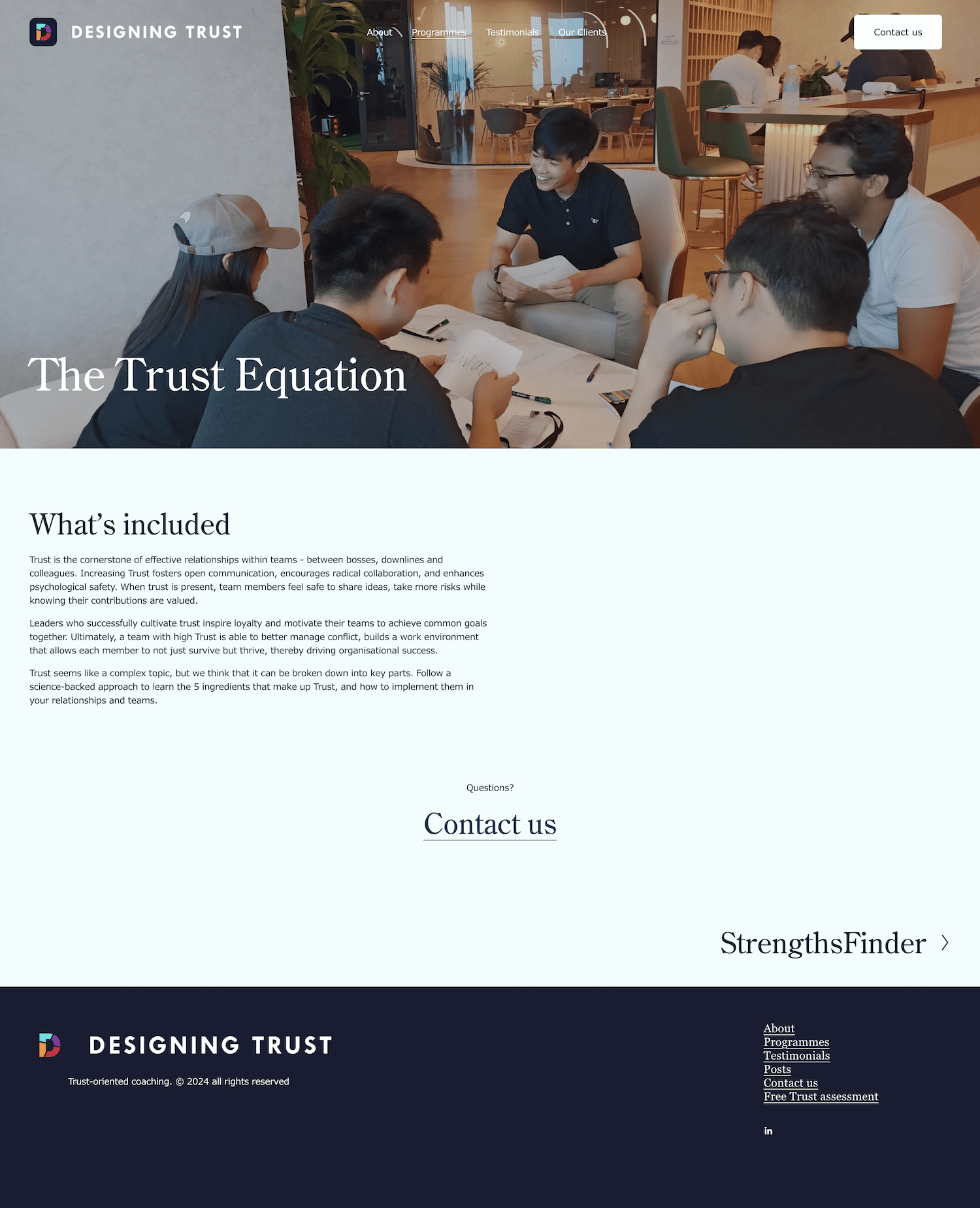 Drawing from her brand questionnaire, program write-ups, and our conversations, I crafted all of the website copy—from service pages that outlined her offerings to an About page that told her origin story and the “why” behind Designing Trust.